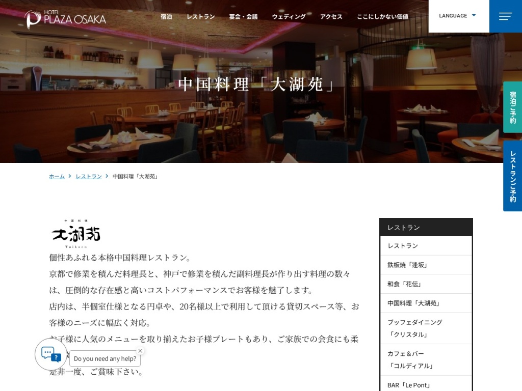 これらの店では、北京ダックや上海蟹、フカヒレの姿煮など、特別な日に相応しい豪華な料理を堪能できます。中でも中国料理「大湖苑」は、ホテルプラザオーサカ内にあり、伝統的な調理法と現代的なセンスを融合させた逸品の数々で多くのグルメを魅了しています。